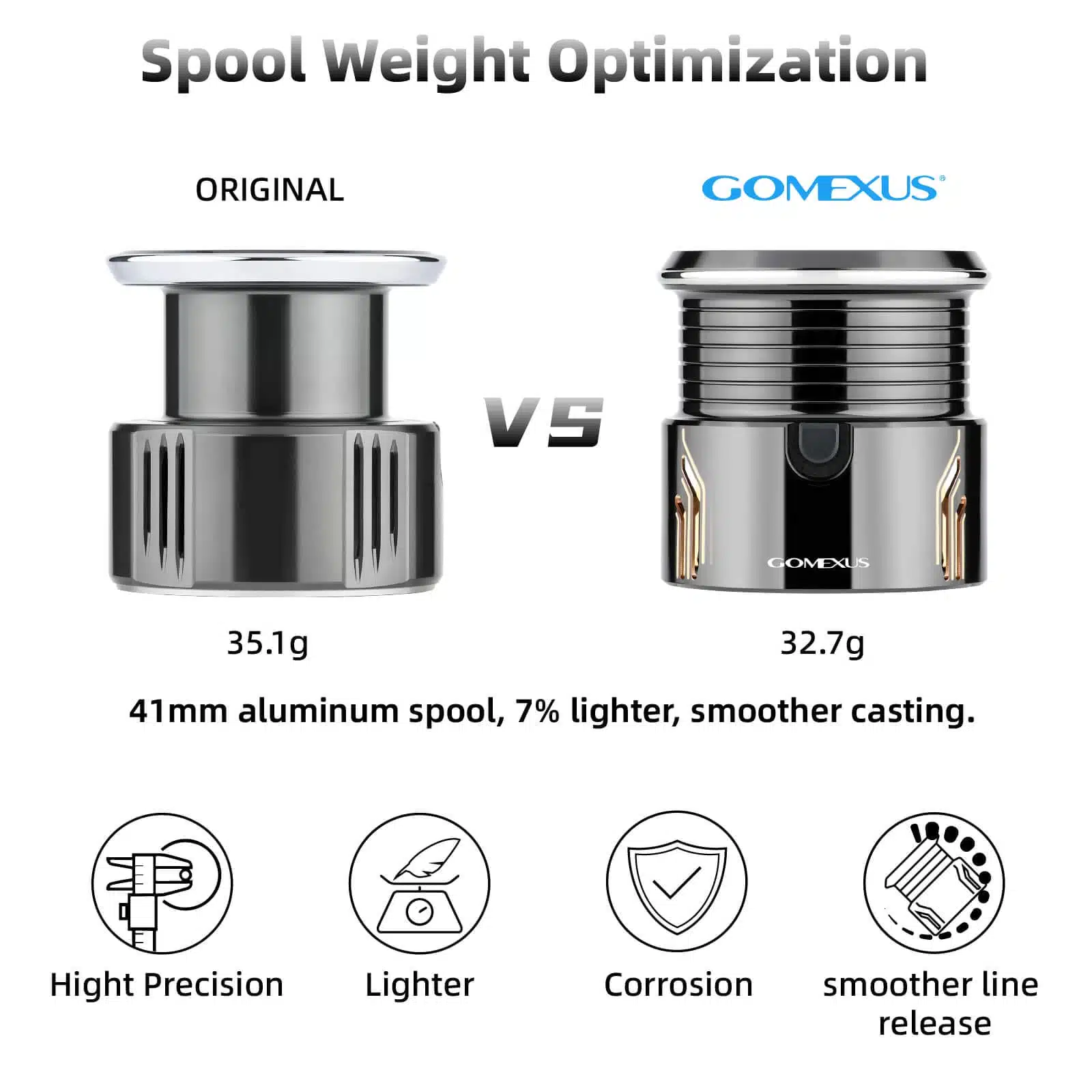 - 【High Precision and Durability】With high precision and seamless cup rotation, the Gomexus C30S spool enhances your reel’s performance for easy, accurate casts, even with smaller lures.