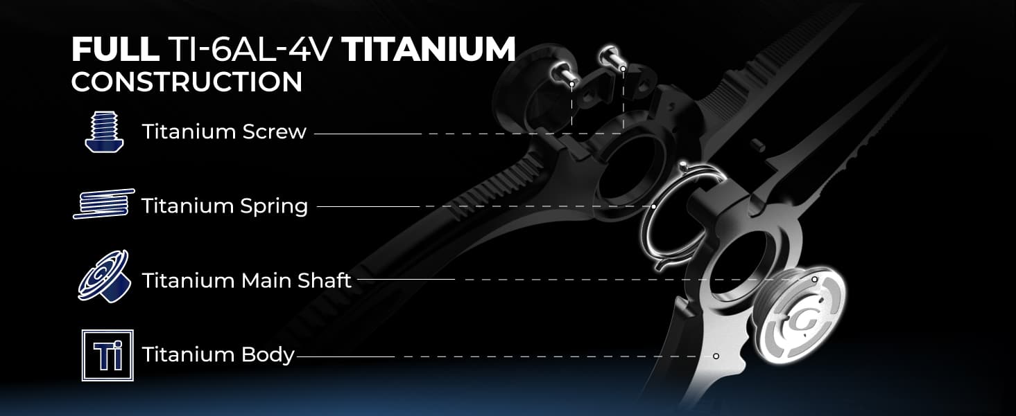 【100% FULL TITANIUM | LIFETIME RUSTPROOF】 Engineered for the harshest saltwater environments, these 6.5″ fishing pliers are crafted entirely from premium Ti-6Al-4V Titanium—including the body, screws, internal springs, and central shaft. Unlike “titanium-coated” tools that eventually flake, Gomexus guarantees 100% corrosion resistance. It’s the ultimate, lightweight investment for inshore and offshore anglers who demand gear that never rusts.