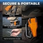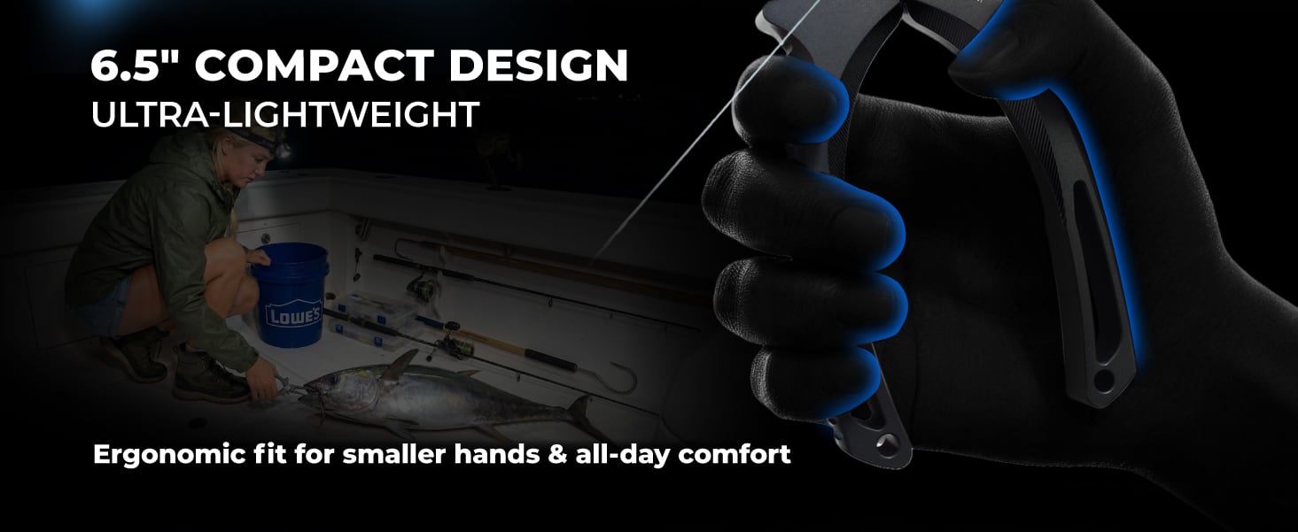 【ERGONOMIC COMPACT DESIGN & LEATHER SHEATH】 The 6.5″ form factor is meticulously balanced for agility, comfort, and one-handed operation. Optimized with an ergonomic, non-slip handle, it provides a secure grip for wet hands or gloves—ideal for kayak fishing, wading, and boat side releases. Includes a premium leather sheath for quick-access belt carry, ensuring your most essential tool is always within reach.