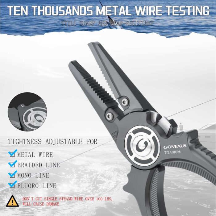 The Gomexus 7.5-inch Titanium Alloy Fishing Pliers are meticulously engineered for offshore fishing. Built to handle tough conditions, these pliers excel in cutting steel wire leaders while offering durability, precision, and functionality.